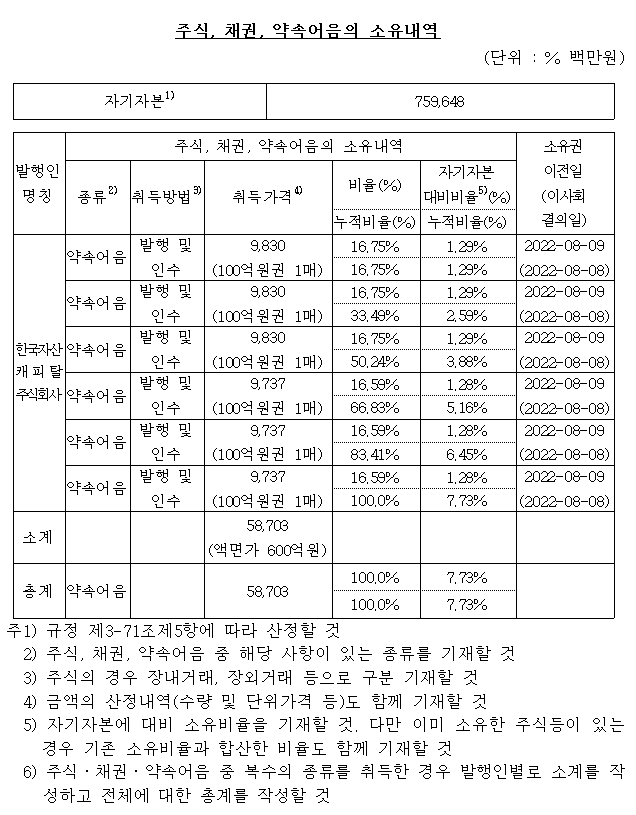 계열회사 발행 주식․채권․약속어음 소유보고서 (2022.8.9.기준)
